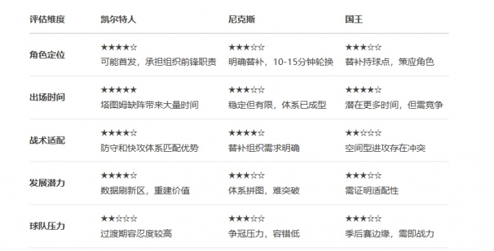 风险:绿军目标仍是争冠,若西蒙斯出勤率(近4年仅打108场)或进攻拖累体系,可能被弃用。