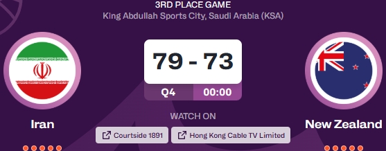 男篮亚洲杯:伊朗战胜新西兰夺得本届亚洲杯季军!
