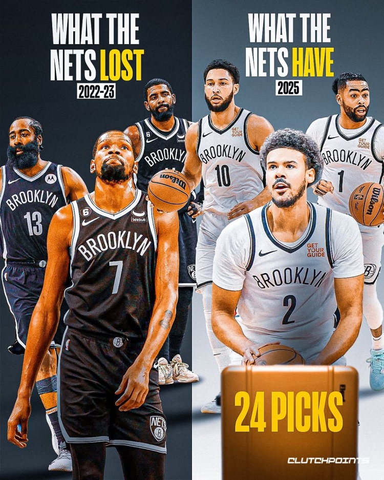 1月23日讯 今日,据美媒统计,截至目前,篮网通过交易三巨头累计获得了9名球员与总计24个选秀权。