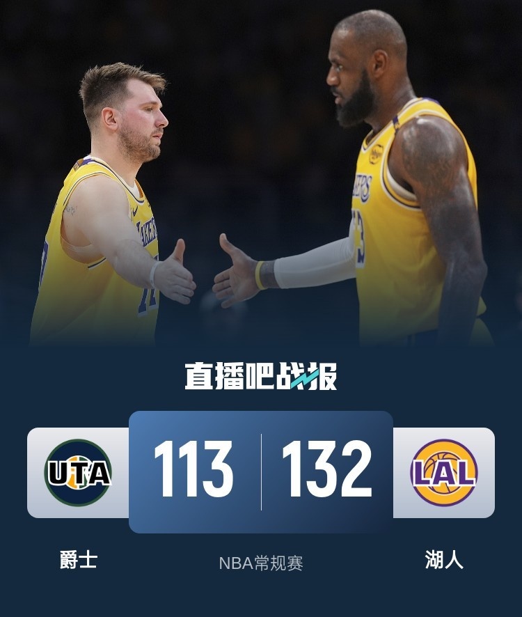 首节之争双方状态都很不错交替拿分,东契奇在送出一记助攻后招牌撤步命中三分拿下湖人生涯首分,而湖人全队首节气势如虹一度18投13中命中率达到70%以上,随后末段手感稍有回落但仍然在第一节就取得12分领先;次节开局湖人虽然轮换阵容但完胜对手上来就是15-6的攻势继续扩大领先,上半场东契奇拿到11分,湖人以60%的高效命中率取得25分领先进入下半场。休息归来湖人虽然没有上半场那样完全压制对手,但上半场建立起的巨大优势让他们在下半场打得很轻松也没有受到威胁,整个下半场分差牢牢控制在20分以上。最终,湖人主场大胜爵士取得6连胜,并迎来最近14场比赛里的第12场胜利。