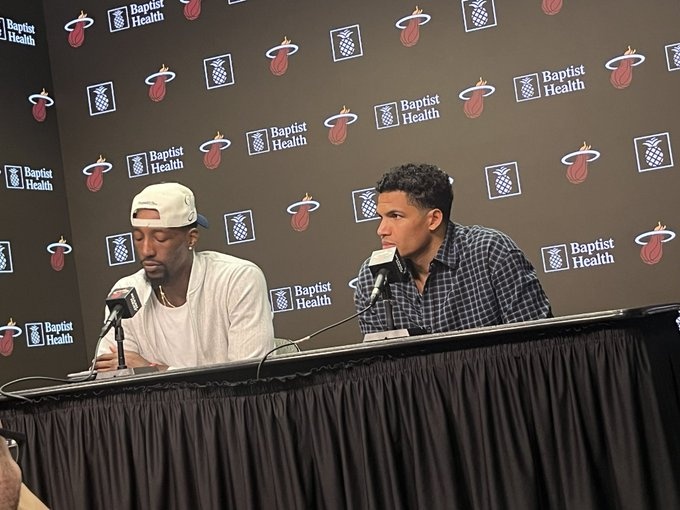 12月9日讯 NBA常规赛,热火122-113战胜骑士。赛后,热火球员阿德巴约和德鲁-史密斯出席了新闻发布会。