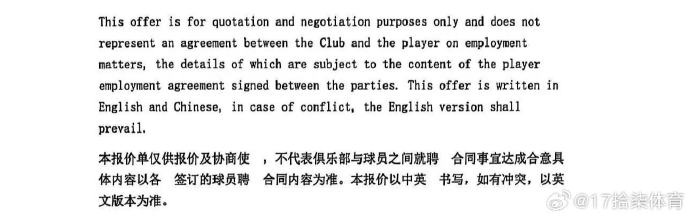 二 多家俱乐部对哈雷尔感兴趣并进行了谈判,其间另一家中方经纪公司在浙江稠州银行俱乐部与哈雷尔的谈判过程中签订了一份报价单,其中明确约定“该报价单仅供报价和协商使用,不代表球员与俱乐部完成聘用合同签约。”——这也是浙江稠州银行俱乐部多次公告中含糊其辞提及的“签约”。最后,在多家俱乐部中谈判协商中球员哈雷尔于二月十日选择了签约新疆广汇俱乐部,三方按中国篮协和CBA公司要求签订了标准合同并在中国篮协完成了经纪人备案。