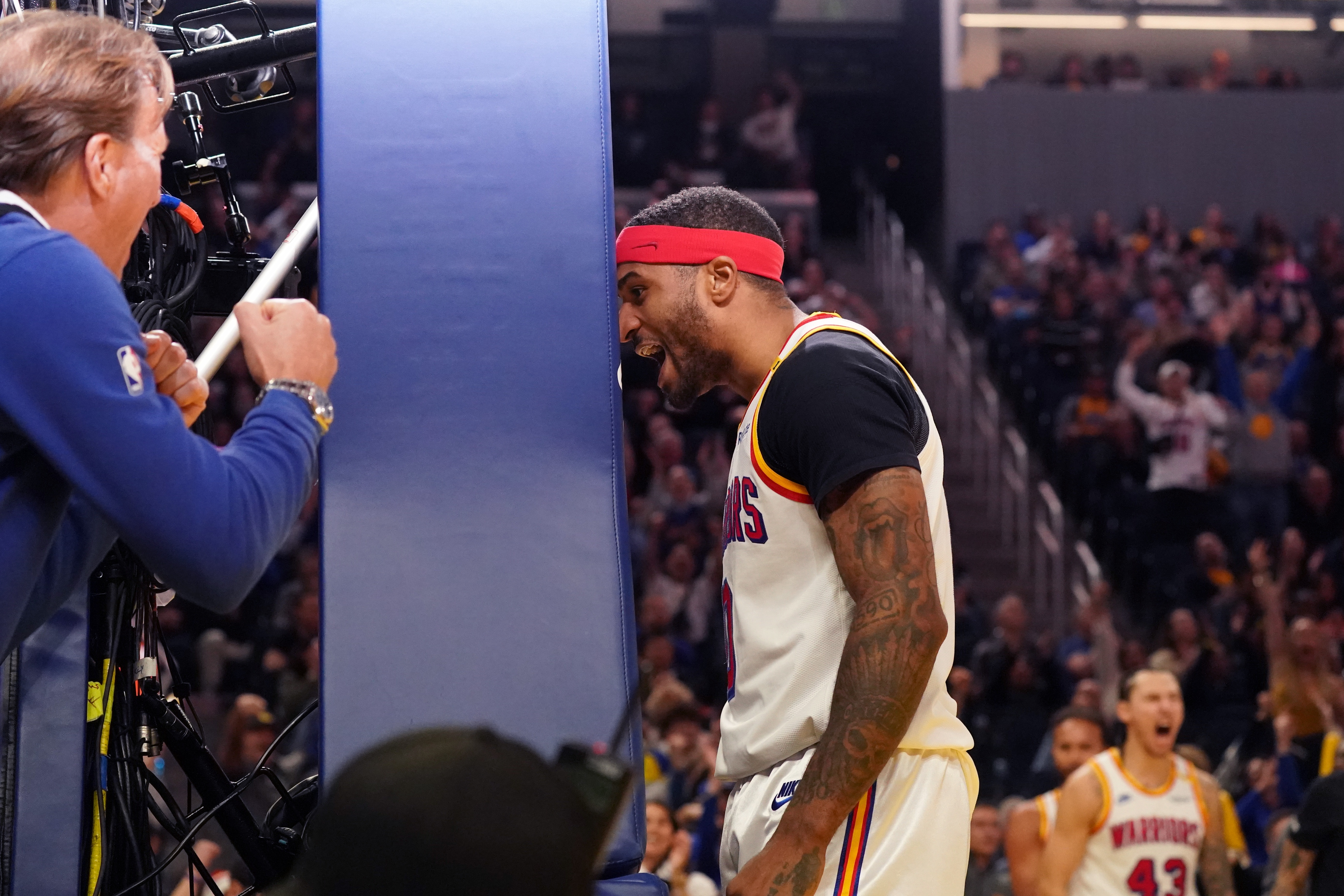 谈到小佩顿,库里说道:“他是一个非常独特的球员,因为他可以在防守端对球施压,作为一个外线防守者,他制造了极大的压力。同时,他在进攻端也有很高的篮球智商,总是能够快速找到自己的位置。我们有很多时候会跑挡拆战术,由我和他配合,他能迅速在中路接球推进,并且知道如何快速转移球、设置高质量的掩护以及完成下一步的动作。”