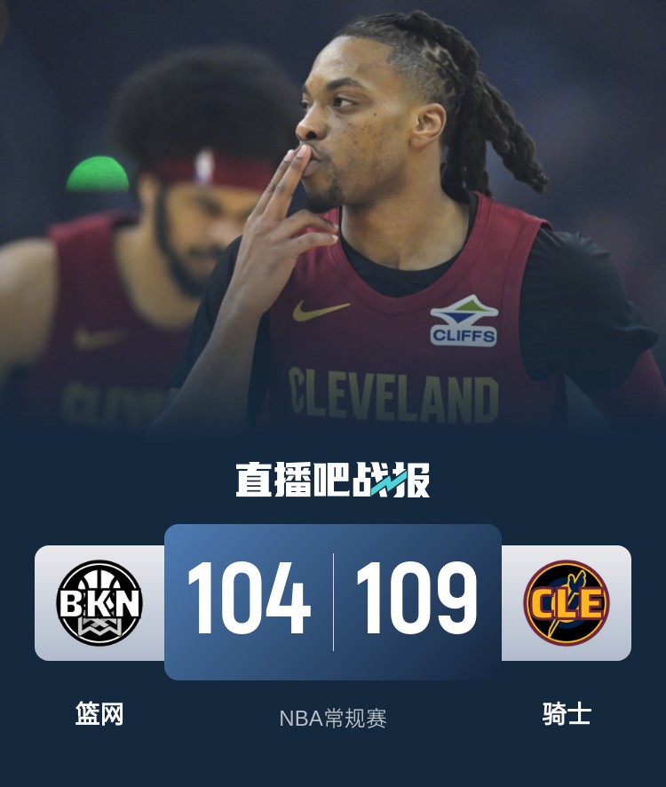开场后骑士先拔头筹,篮网这边扎威手感火热独中三记三分,两队你来我往连续打成平手,威尔逊压哨三分命中帮助篮网首节取得优势。第二节,莫布里和阿伦轮番在内线强攻拿分,不过篮网进攻端多点开花将分差拉大,托马斯在第二节后半段突然爆发连连砍分。易边再战,篮网外线手感依旧火热,骑士稳扎稳打靠着加兰和双塔追分,三节结束时波特在中线位置投进一记超远压哨三分。最后一节,加兰上来内突外投继续带领骑士迫近比分,篮网命中率下降,骑士完成反超,关键时刻加兰连续突破拿分,最终骑士109-104逆转篮网豪取15连胜。