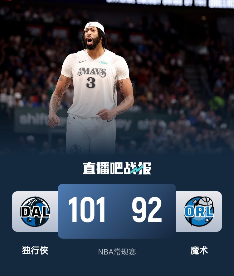 比赛上来,两队就打得十分胶着,并且在进攻端的发挥都不好,分差始终没能拉开,首节双方的得分都没能达到20分,次节魔术终于找到手感并逐渐占据场上主动,而独行侠这边浓眉手风不顺频频打铁,半场结束时魔术领先7分;下半场回来,魔术逐渐将分差拉开到两位数,不过在68-57后魔术突然断电,独行侠在第三节最后五分钟时间里轰出20-2的攻势直接反超,末节比赛魔术的表现也没有起色,独行侠逐渐建立起十分的领先优势,最终独行侠力克魔术,终结了后者的三连胜。