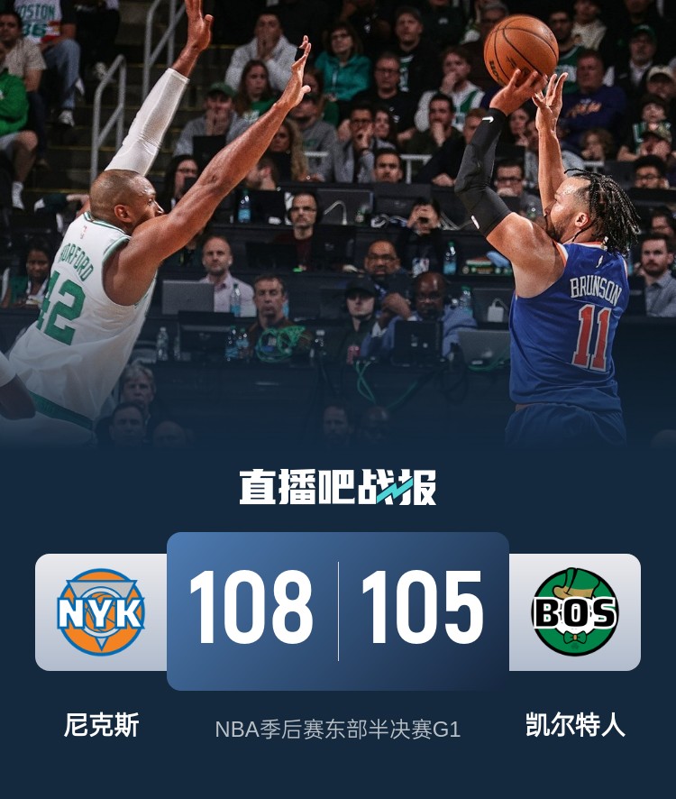 5月6日讯 NBA季后赛东部半决赛G1,凯尔特人坐镇主场迎战尼克斯。